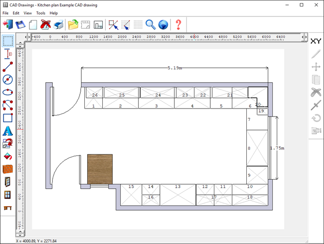 - Drawing tools are provided so that you can quickly create walls and position doors and windows.