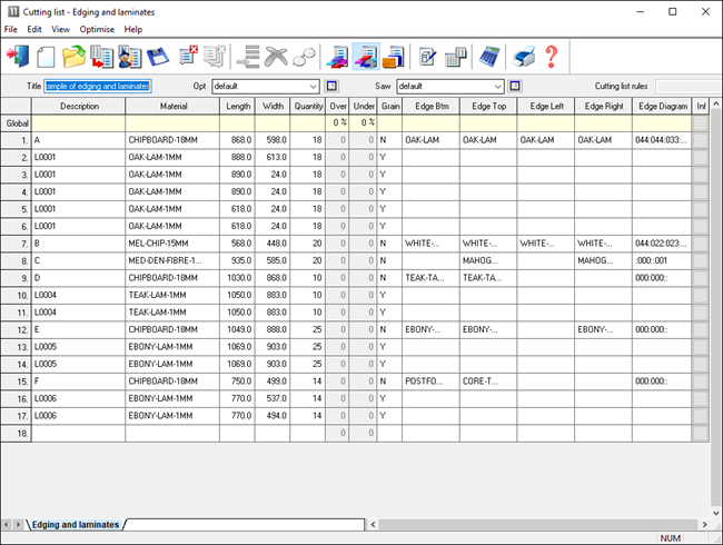 • The edging library holds description, thickness and cost of all of your edging and laminating materials including tape and solid lipping.