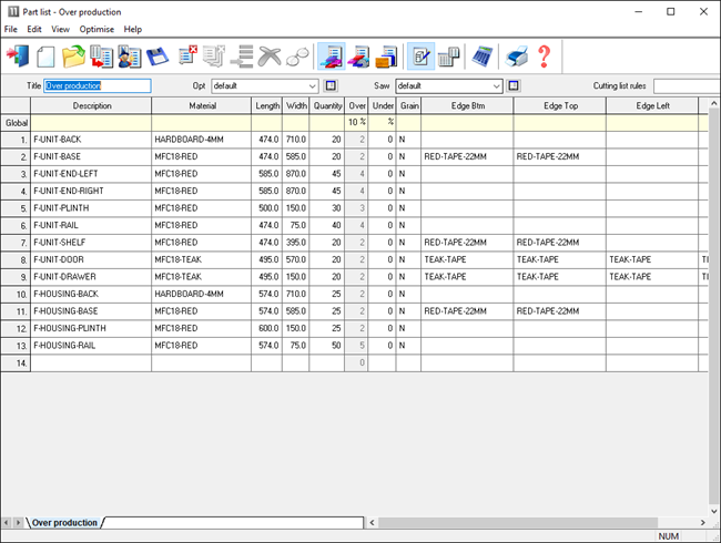 - Up to 99 items of information per part, including edging material can be entered or imported directly from spreadsheets.
