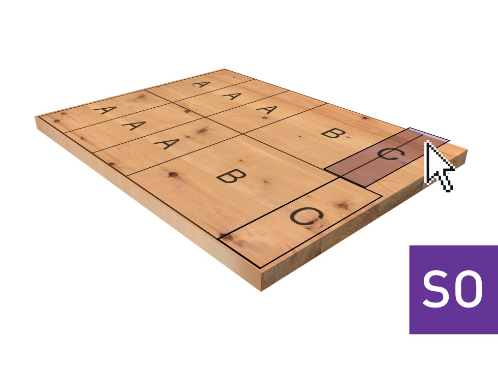 • Grain matching - Position parts in defined templates within the cutting pattern to achieve a uniform veneer pattern.
