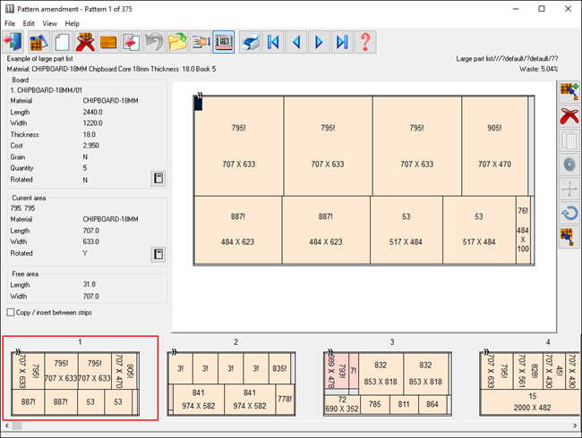 • Pattern display - thumbnail preview - show material texture or colour coding for recut parts and offcuts.