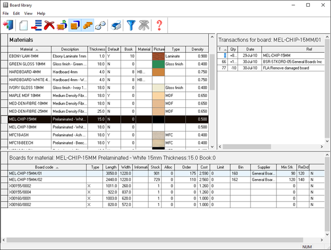 - Physical stock control of hardware and edge banding material when used with product and quotes module.
